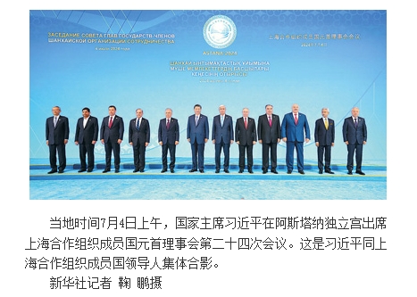 本报阿斯塔纳7月4日电 (记者杜尚泽、谢亚宏)当地时间7月4日上午,国家主席习近平在阿斯塔纳独立宫出席上海合作组织成员国元首理事会第二十四次会议。